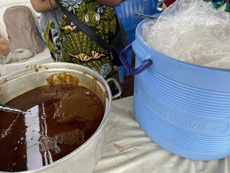アクリココ(トウモロコシ粉の粥300個)、揚げドーナツ、水