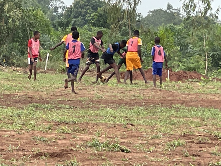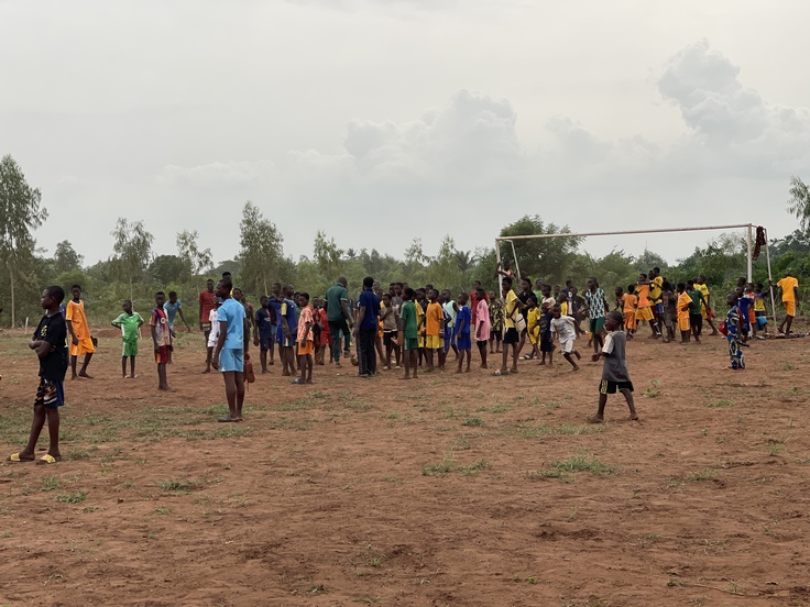 (写真:食事終了後、なんと村長含む合計100人?!みんなでサッカー大会が始まりました笑)