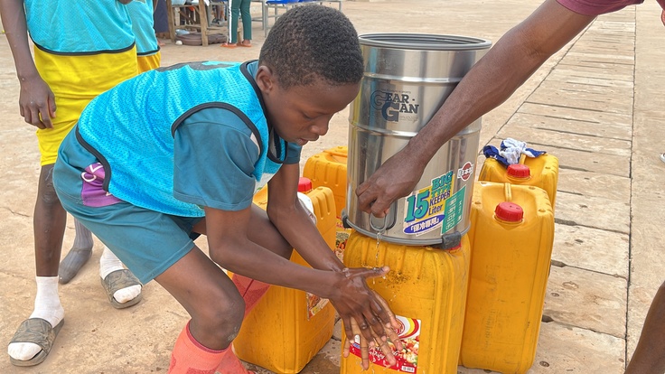(写真:会場に水道はないので水タンクを持参して手洗いしました)