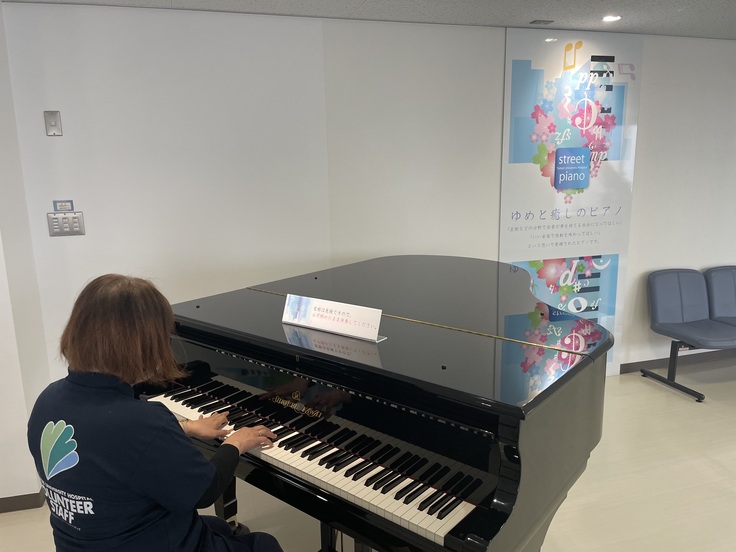 ■本日は、サポーターの方に院内に設置しているストリートピアノ「ゆめと癒しのピアノ」を演奏いただきました。素敵な音色に患者さんや病院スタッフも癒やされました。