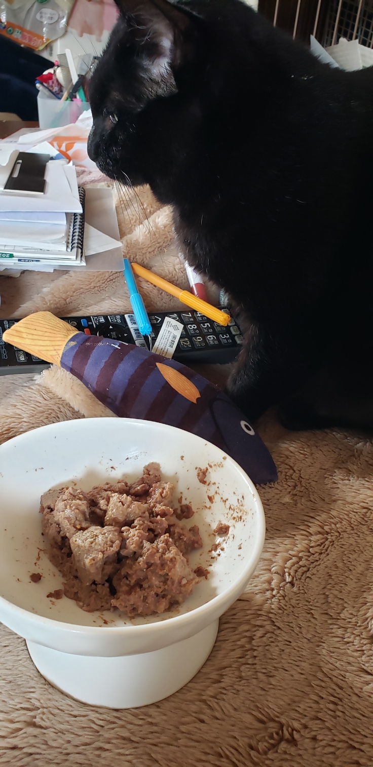 チキンパウチ」あげたら、30g食べてやめて、10分後にまあ一度追加で足したら23g食べてくれました😂コロコロc/dを変えないと、ダメなんだなって「かえても食べない時も」