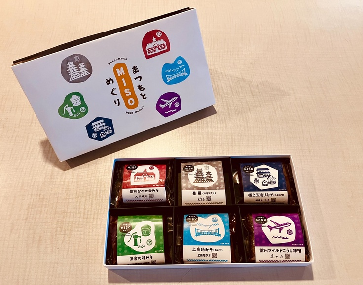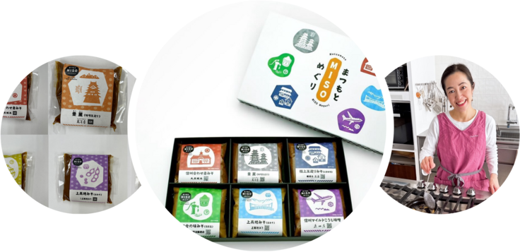 “ばーちゃるまつもと”の取り組みでは、地元の味噌蔵の皆さんと共同で各蔵のクラフト味噌が楽しめる「まつもとMISOめぐり」の商品開発と販売に携わらせていただいてます。