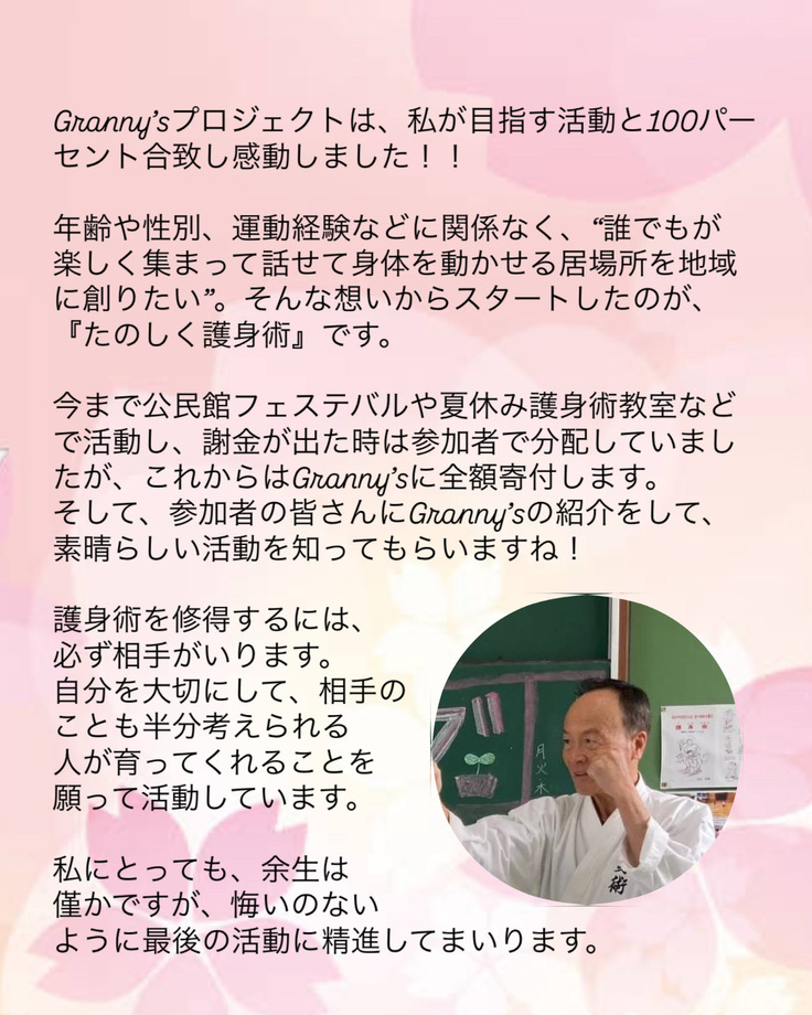 私も中村先生のように、Granny’sプロジェクトを10年20年持続可能なプロジェクトにしていき、自分が“リアルGranny”になれる歳まで頑張りたいなと、先生のメッセージを読ませてもらいながら思いました✨