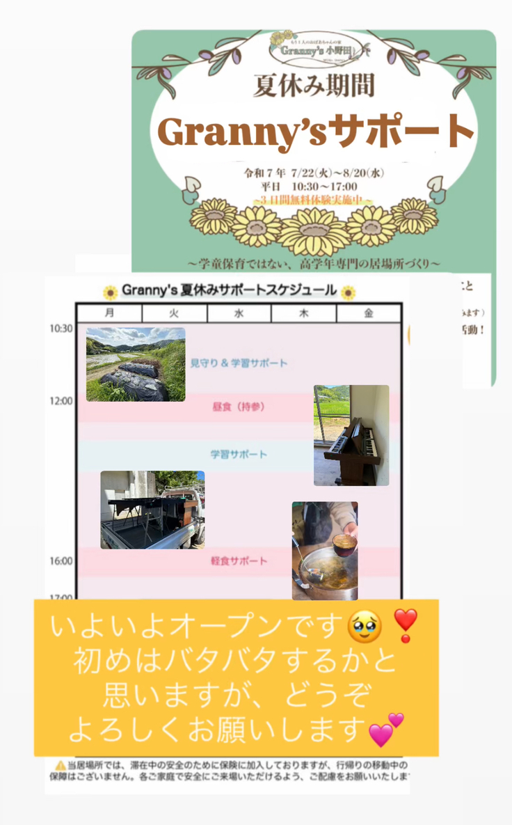 ついに本日から、Granny’sプロジェクトの『夏休み子どもサポート』が始まります🎉