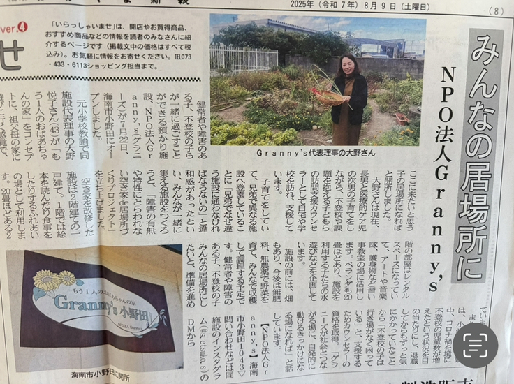 この度、わかやま新報さんにGranny’sの記事が掲載されましたので、ご報告させていただきます🌈