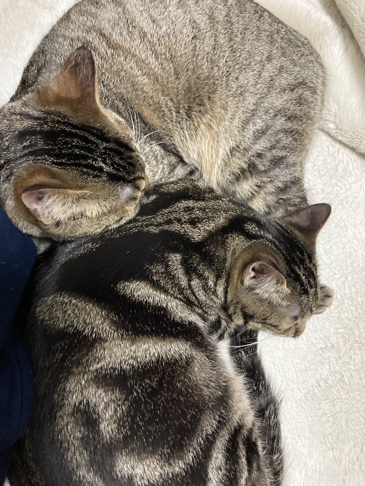 こんな感じで安心するのか、いつも妹のライリとくっついて寝て、ライリもクウリが側に居ると安心みたいです。
