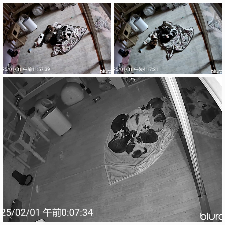 カメラを覗くとみんなで猫団子に…お部屋は23℃で暖かいのに…