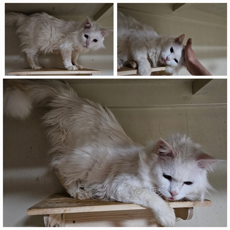 1人なので中々写真が取れず、一苦労撫でるのを止めるとお尻を上げておねだり…とってもビビリで気の優しい子…。猫AIDSで口内炎を繰り返す為にお薬や注射を継続しなければならないけれどこれからも元気で頑張ろうネ。