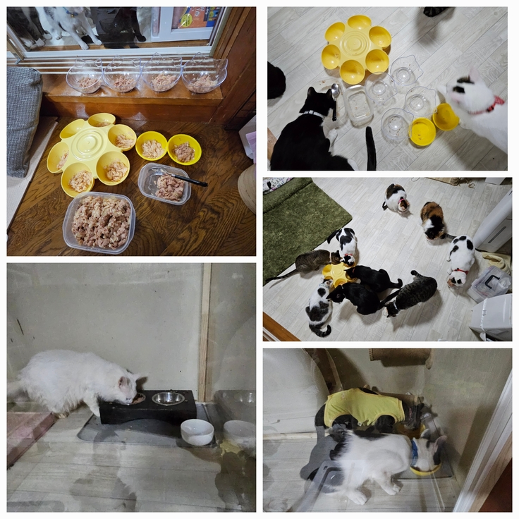 今日も30袋10分で完食❗食後のチェックでおはぎちゃんの抜糸の後もきれいになりウェアが脱げました。みんな食欲旺盛…。