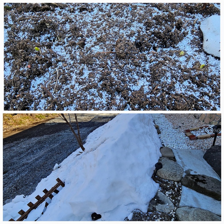 雪の下から春の準備が…。以前に植えていたお花の球根の芽が...まだ小さいですが、しっかり根を張り春を待っていました。屋根から落ちる雪が、1mを越える高さに...今日の朝も少しずつ崩しました。私も負けずに頑張ろう、改めて思いました。