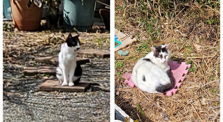 たっぷりの日差しの中日向ぼっこ中の🐱たち…ご飯を置いて次へ移動…