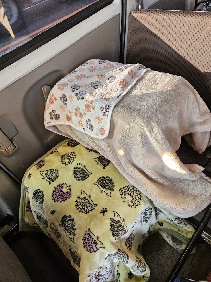3月18日、今日はショコラちゃん、シルクくんの健康診断です!ビビりのシルクくんキャリーへ入る時爪が私の小指にグサリ…移動中に出血…。車で移動中ショコラちゃんのキャリーからイビキが…