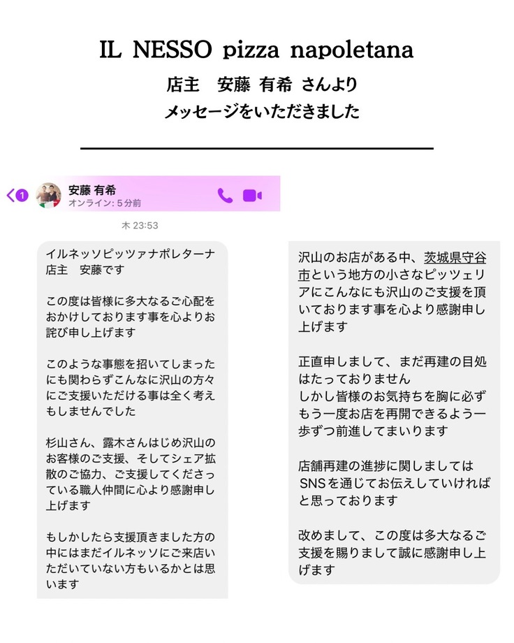 店主の安藤有希さんよりご支援下さった皆様へのメッセージが届きました。