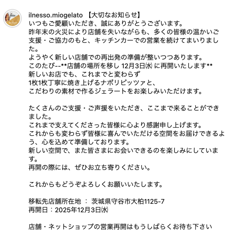 今後の最新情報は、イルネッソさんのInstagram公式アカウント(@ilnesso.miogelato)からもご覧いただけます。