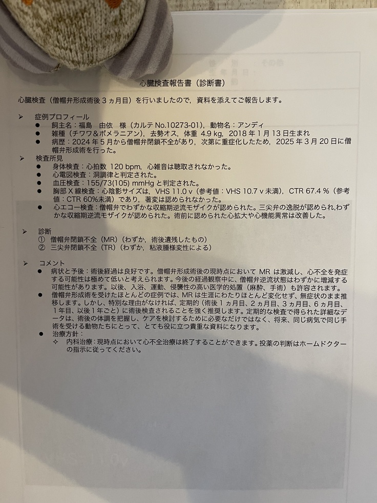 心臓の治療は3か月検診をもって終了となりました👏㊗️