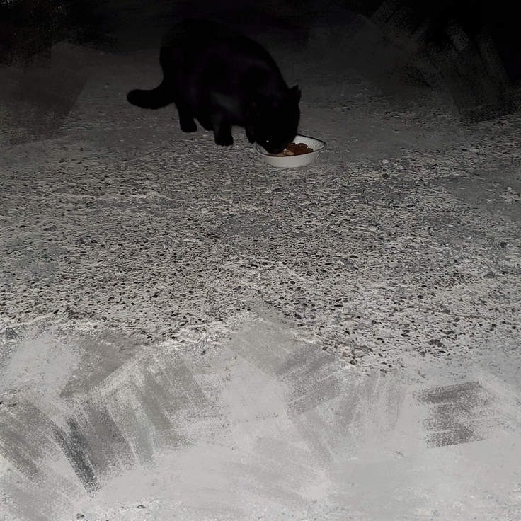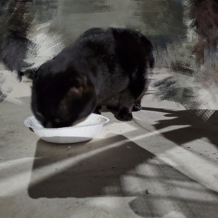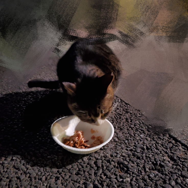 もう一匹の心配している子も同じく一度帰ってはダメ元で何度も行ってもういい加減諦めて帰ってる時に歩いてきたので、時刻は23時ちょっと回っており寒いし夜中だし…と思いましたが、あげないという選択はないですし、食べ終わるのを見届けて片付けをして帰宅したのですが、この子もこのタイミングで会わなかったらお腹空かせたまま私が気づかず帰ってしまって待たせていたのかもと思うと、何度も行ってよかったとは思いましたが、なるべく深夜ではなくいつもの早い時間に来てくれたら…と思ったりしました。
