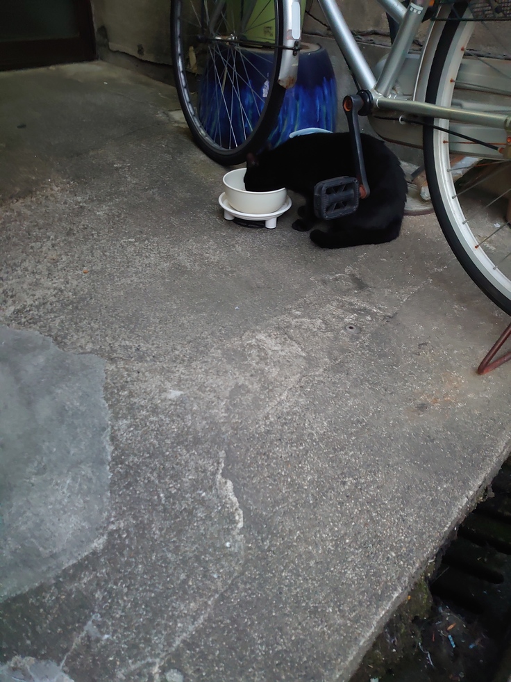 母猫がもう1匹を別の餌場に連れて行ってます。