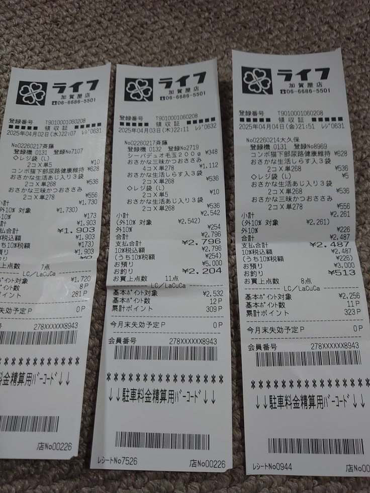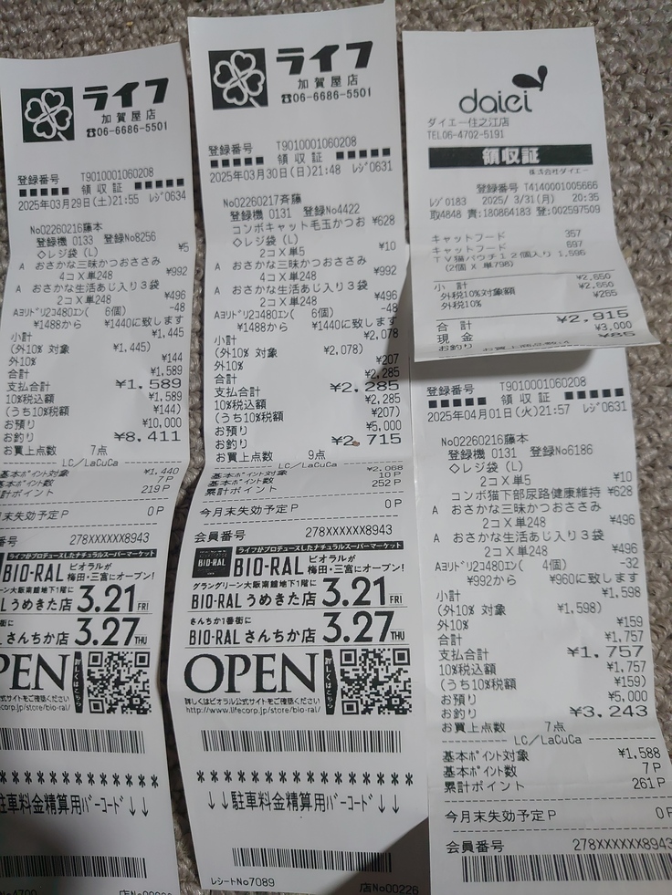 餌やりから帰ったらまとめて金額出します。