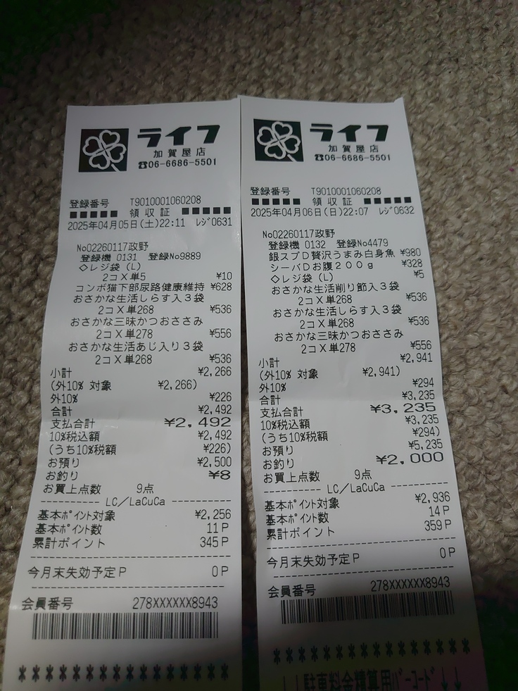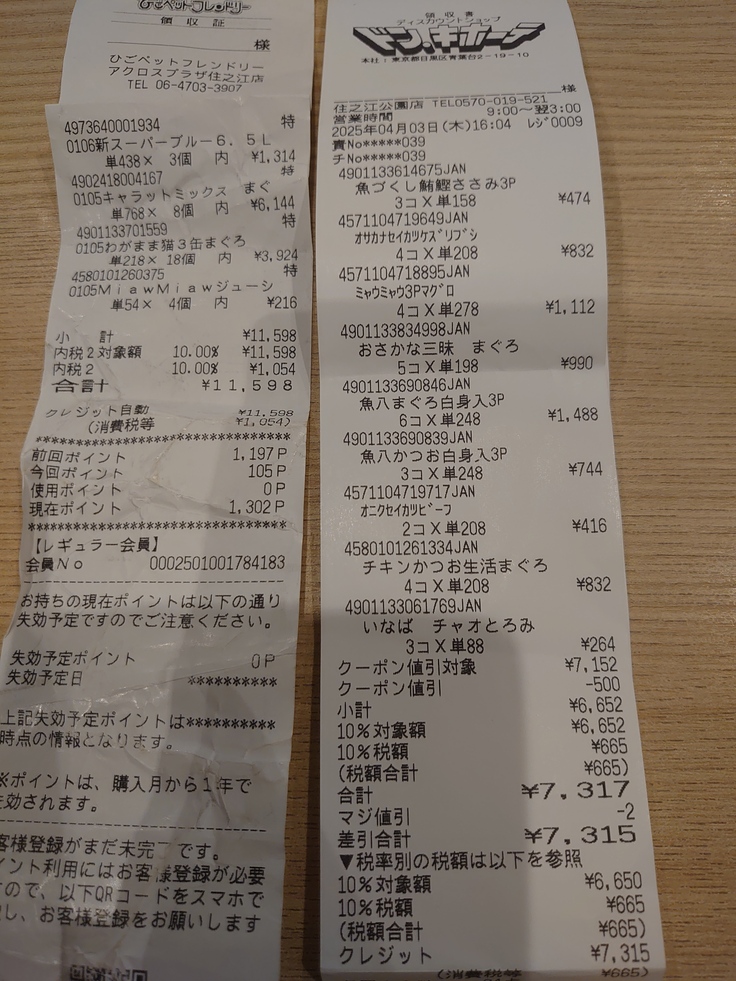 3月に買い物にいったひごペットのレシートが出てきたので、