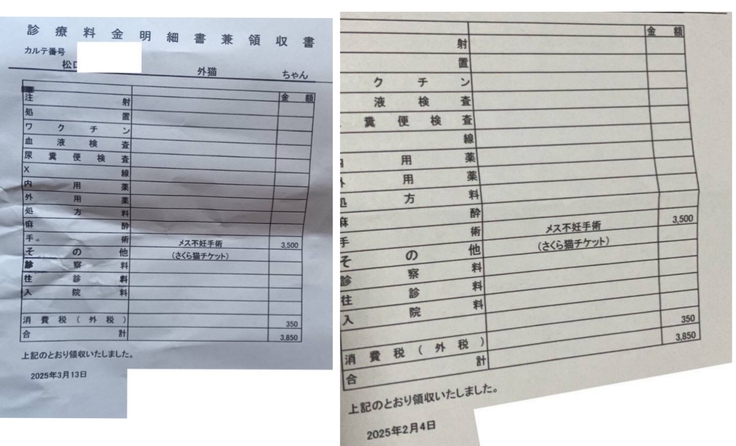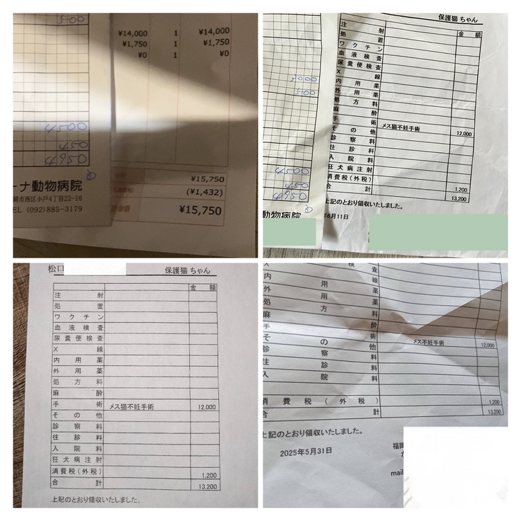 猫の避妊手術 費用、初期予防費、猫 ハウストイレ工事費、備品代、フード代として使用させていただきました収支報告書は、下記の記載となります。