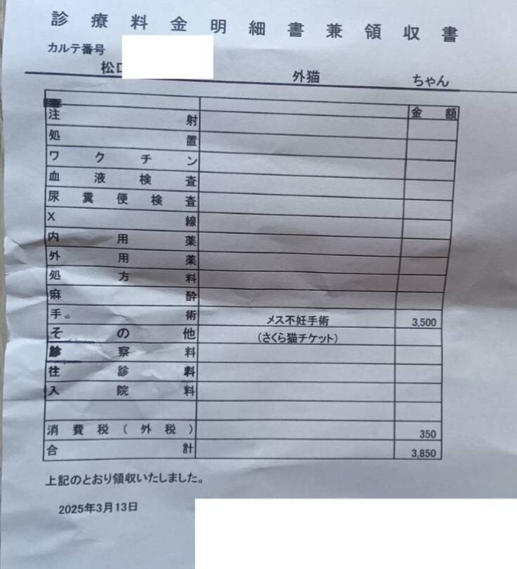 母猫を手術して これ以上増えないようにしましょうと提案し手術した後、地域猫として餌やりを提案。