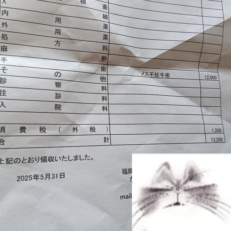 妹)ミケ避妊手術が終わり さくらネコ🌸メス猫は開腹手術のため6/3まで入院その後 リリース予定。