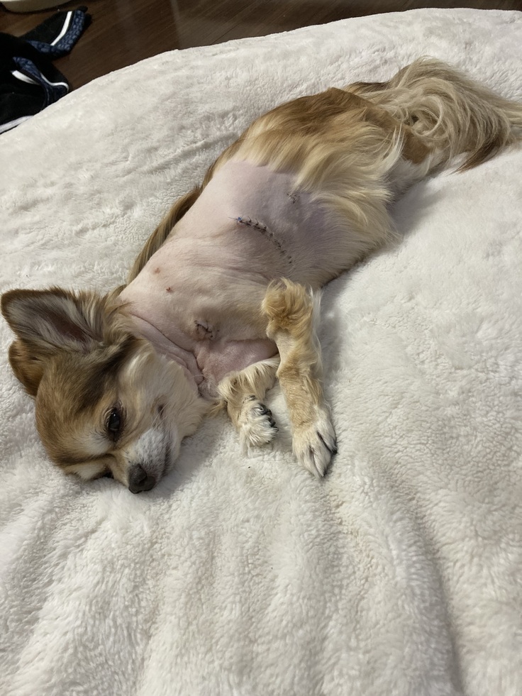 どうしても助けたく、手術を決断しました。手術までの間も肺水腫にならずになんとか持ち堪えてくれました🥹