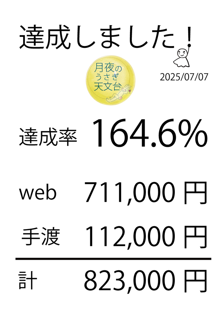 このたびは「月夜のうさぎ天文台」のクラウドファンディングに、たくさんのご支援と温かいお心をお寄せいただき、本当にありがとうございました。