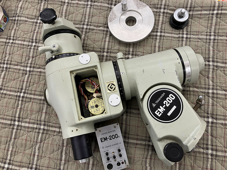 望遠鏡を駆動させる架台(赤道儀)を久しぶりに清掃をしました。一度取り外すと厄介で、ネジを回して「はい完成」ではなく、赤道儀の中心を北極星を目印に、緯度35°07'09"に合わせなければなりません。そうでなければ、星(恒星)をモーターで追尾する赤道儀(当天文台は恒星時追尾)ですので、恒星は良いのですが、月や惑星は視野からズレてしまいます。