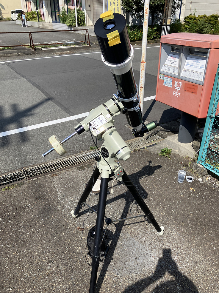 動作確認のため、先日ご寄付いただいた三脚に取り付け、太陽を観望しました。