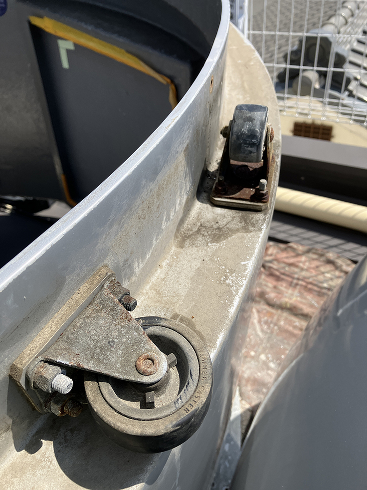 個人的に懸念していた半球ドームを回転させるローラーが塩害によるサビで、固着しローラー部分が削れている箇所がありました。これらボルトやナットも含めて、全て取り替える予定です。