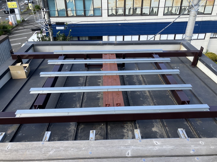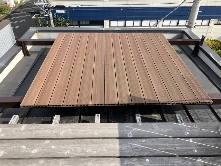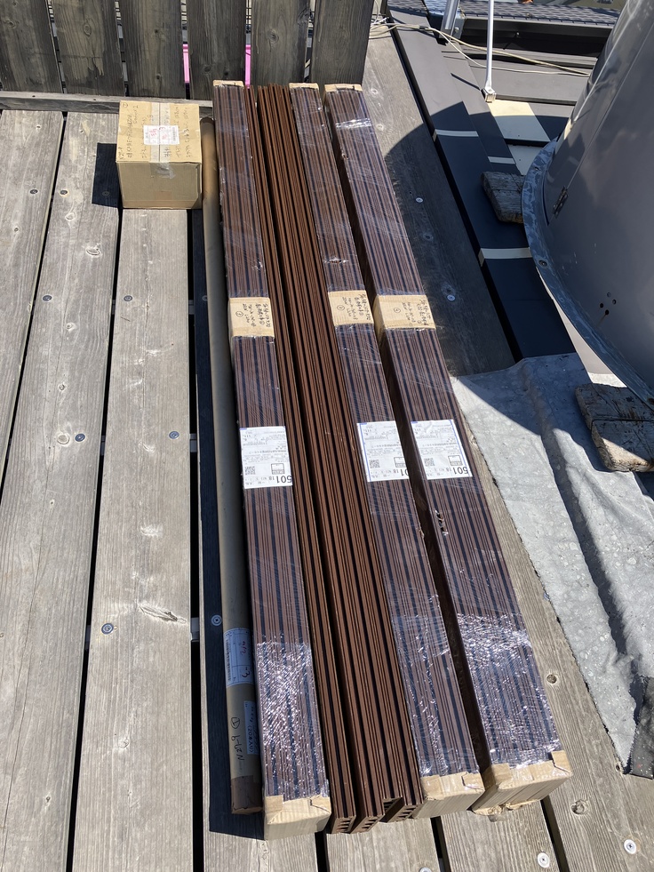 雨の後、9/8(月)は、床材の搬入。これが結構重たくて、14本を上げてもらいました。