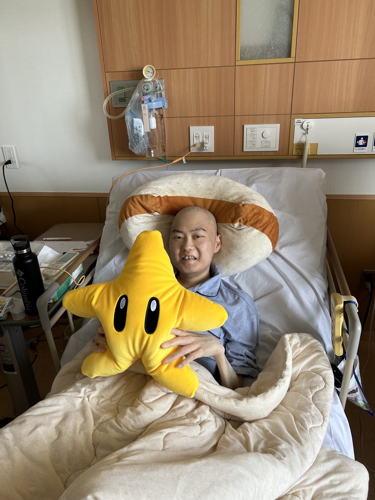 弟からユニバのお土産にスターのぬいぐるみ貰いました!これでパワーアップして病気をやっつけていきたいと思います!ありがとう!