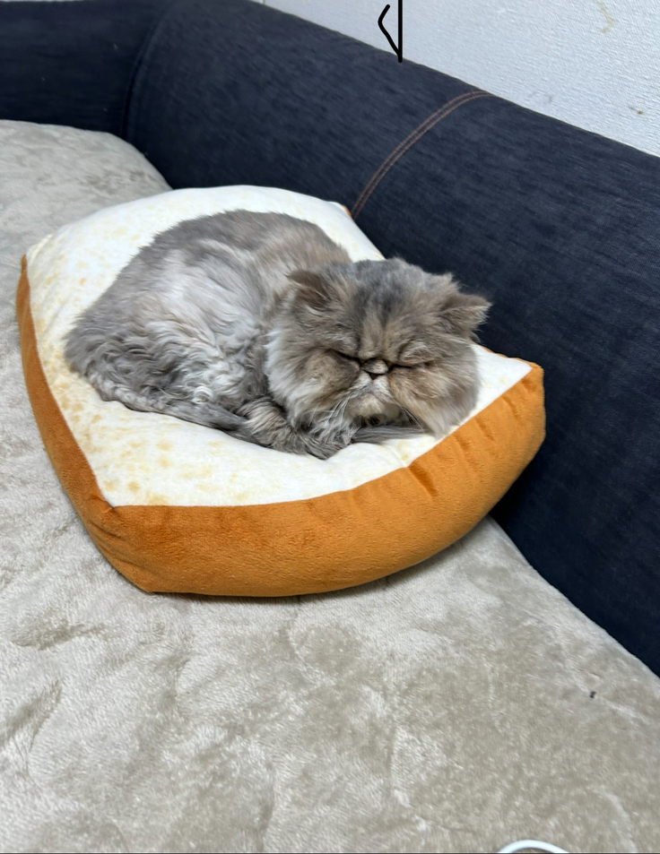 猫ちゃんが食パンの上で寝ている写真が一枚だけあったので載せておきますね!