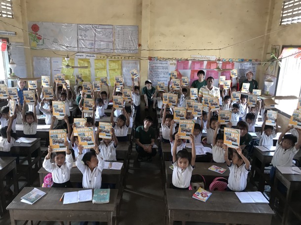 カンボジアの農村部の小学校には1人一冊の教材を手にして勉強する環境は当たり前ではありません。むしろ稀です。