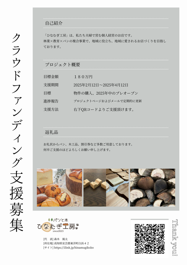 地域のため、私たち家族の夢のために何卒ご支援のほどよろしくお願い申し上げます。