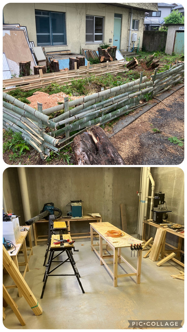 ↑↑梅雨時期になんとか活動をしたかったので、木工作業場一番最初に仕上がりました。