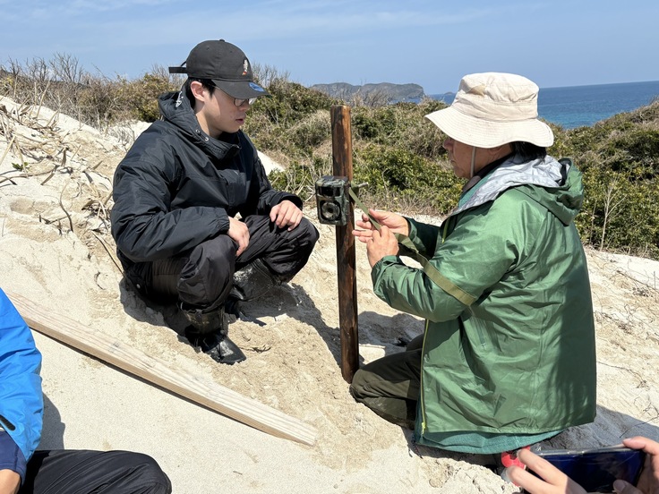 画像:2025年3月 対馬でトラップカメラを設置した様子