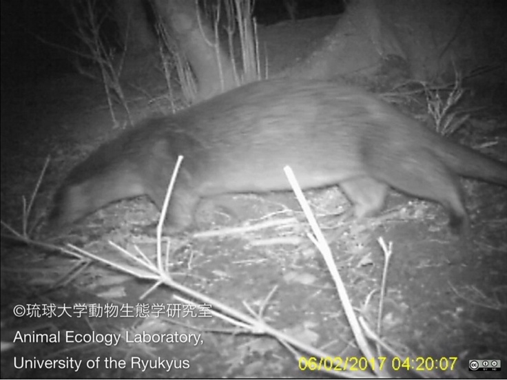 画像:2017年に対馬で撮影されたカワウソ ©琉球大学動物生態学研究室