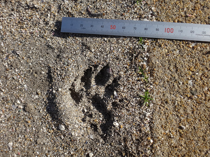 画像:当協会理事長が対馬の調査で撮影したカワウソの足跡