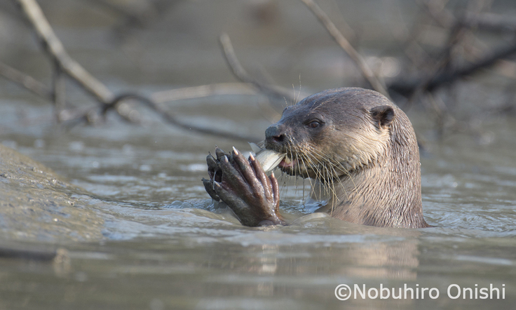 画像:当協会が保全活動に取り組む種の一つであるビロードカワウソ(当協会理事・大西撮影)