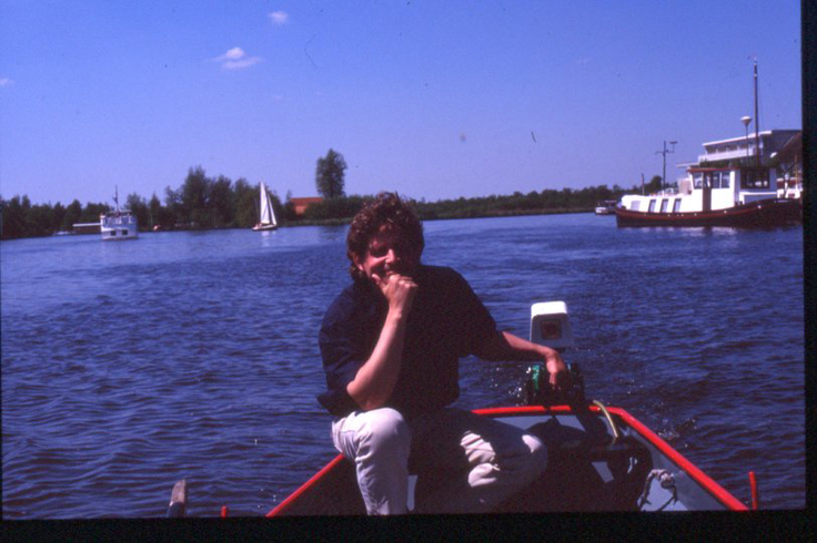 図2:1996年にオランダを訪問し電動ボートでカワウソ生息候補地を案内していただいた