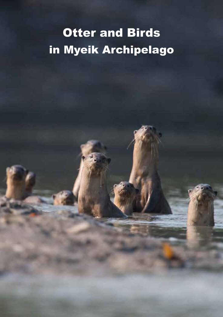 最初はカワウソを見ることが難しかった中、NGOや大学、ツアーガイドと調査を進めるうちに、だんだんと見る機会も増え、同時に多くのツアーガイドにカワウソや野鳥が地域を特徴付ける生き物であることが知られていくようになったと感じました。また、そこに地元大学の専門家が加わっていく仕組みも、見通しが立ちはじめました。2020年の3月には、Otter and Birds in Myeik Archipelago という冊子(図4)を作り、ツアーガイドをはじめ関係していた団体に配布して、地域の野生動物の魅力を発信していけるよう努力していました。残念ながら、コロナウイルスの流行によって、タニンダーリ地方域での活動は、中断せざるを得なくなり、エコツアーの展開も立ち止まったままです。現在のところ再開の目処も立っていませんが、現地のNGOと再開のタイミングについて検討を重ねているところです。今後のミャンマーの展開にも注目ください。