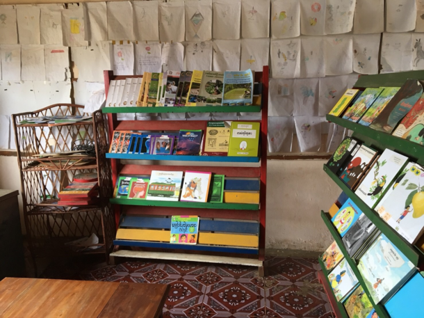 図書館に関して、日本の学校の図書館は学校建設の一環としてしっかりとした作りになっているのが一般的です。しかし、グラフィス小中学校の図書館は手作りで作られています。また、図書館は校長先生に管理されています。本の貸し借りに関しては、日本と同様に、手帳での管理となっています。現在、図書館に設けられている書籍数は約400冊と日本の小中学校の図書館と比べると差は大きいです。 図書館は中学生が多く使っているため、小学校5、6年生は中学校から本を借りています。低学年の子ども達は絵本をよみたいにも関わらず、図書館には難しい本が多いため本を読むことができない現状です。
