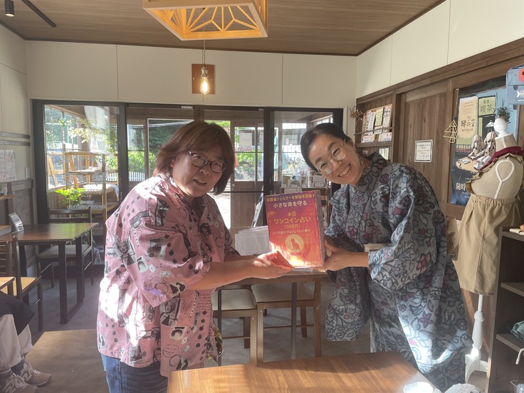 カフェでの開催で、ハンドメイド雑貨、、占い、どのブースも大盛況。