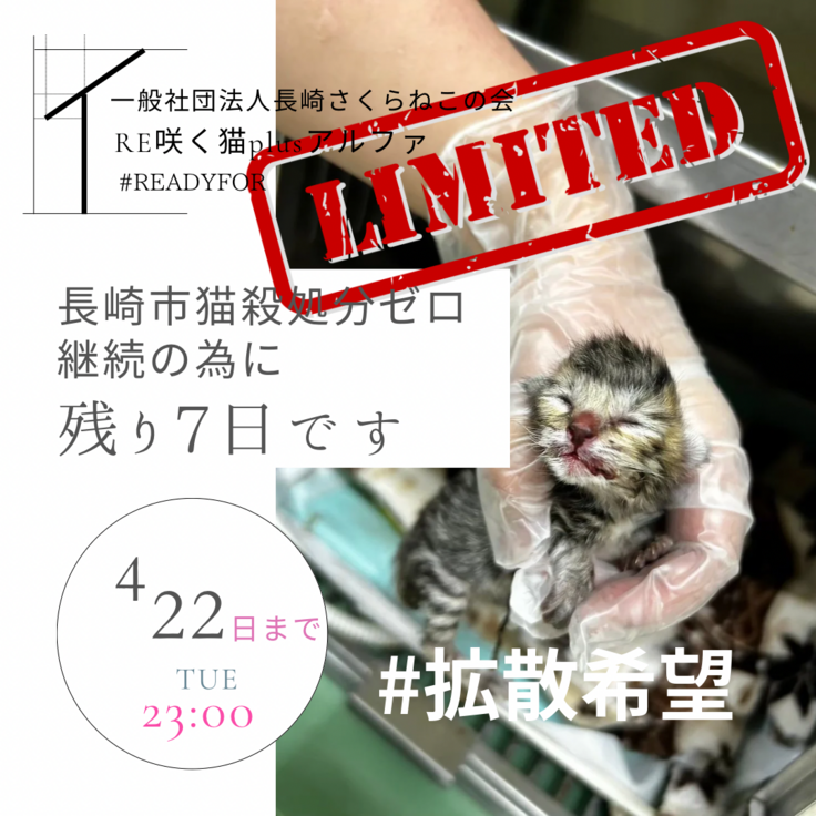 長崎さくらねこの会は現在クラウドファンディングにチャレンジしております。