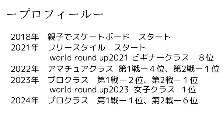 土曜日や日曜日には6時間以上も乗り続けて仲間と切磋琢磨している中で、フリースタイルを広めたいという気持ちが大きくなったようでした。広める為に必要な事は中学生である自分が子供ながらに世界チャンピオン(womandivision)になれば日本でも知名度が上がるかもしれないと思い、挑戦を決意した様子。