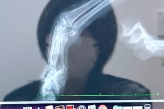 体格のいい男の子ですが、歩く姿を見てると可哀想ですね。車が来ても素早く逃げることはできないと思います。