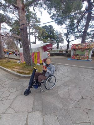改善しつつ、一般的な手動式車イスにも装置可能な機具づくりを目指します。