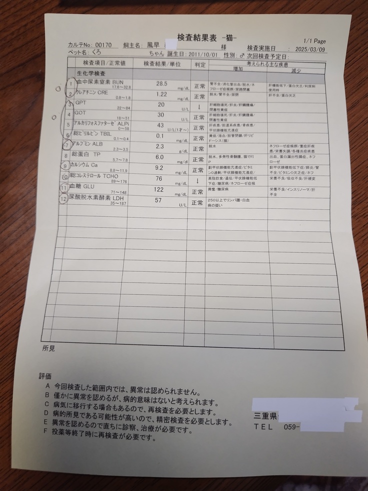 くろ検査結果